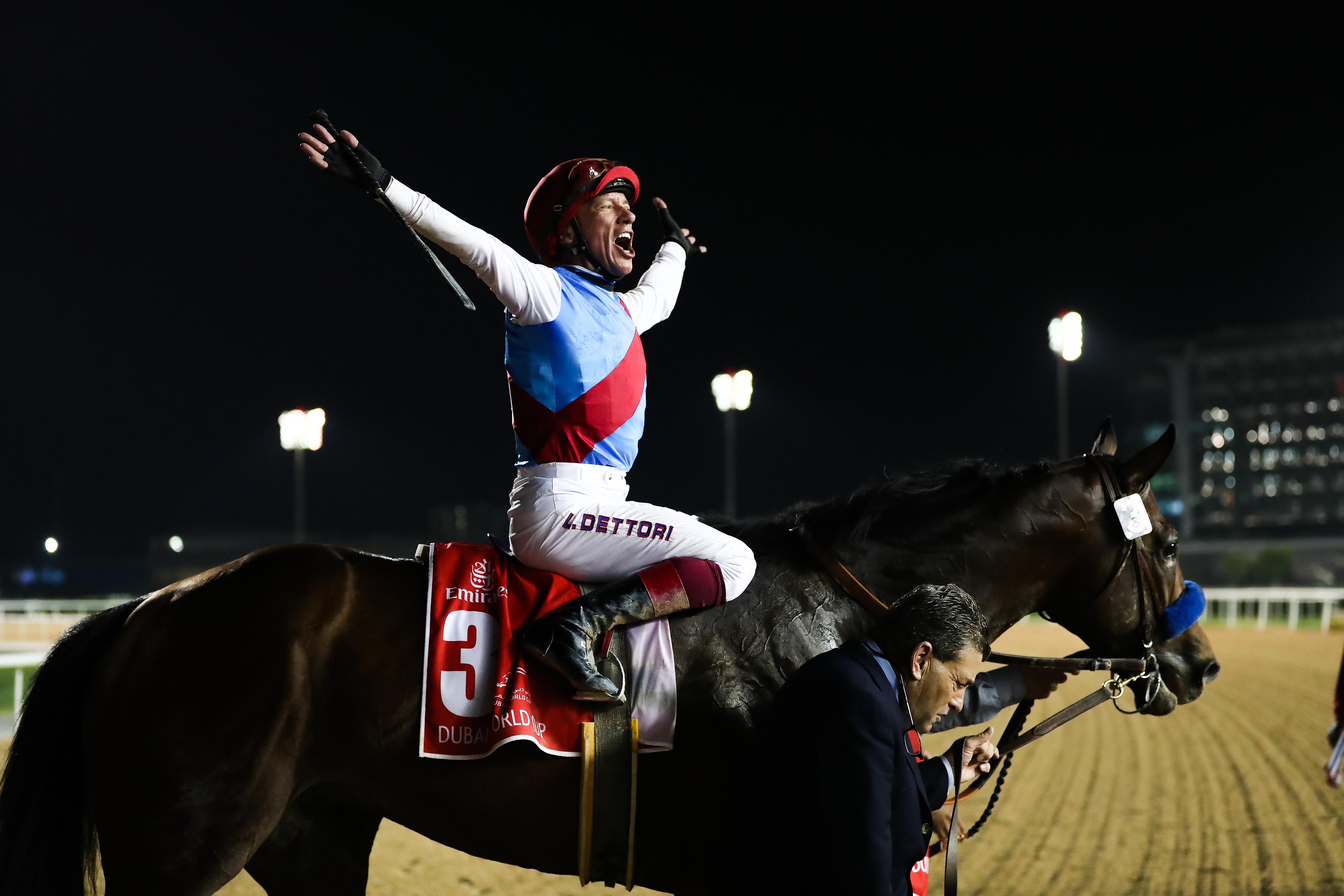 The victory, which came just two days after four of Baffert's horses were sent to other trainers so they could earn qualifying points for the Kentucky Derby, was the fourth for both Baffert and Dettori in the DWC.