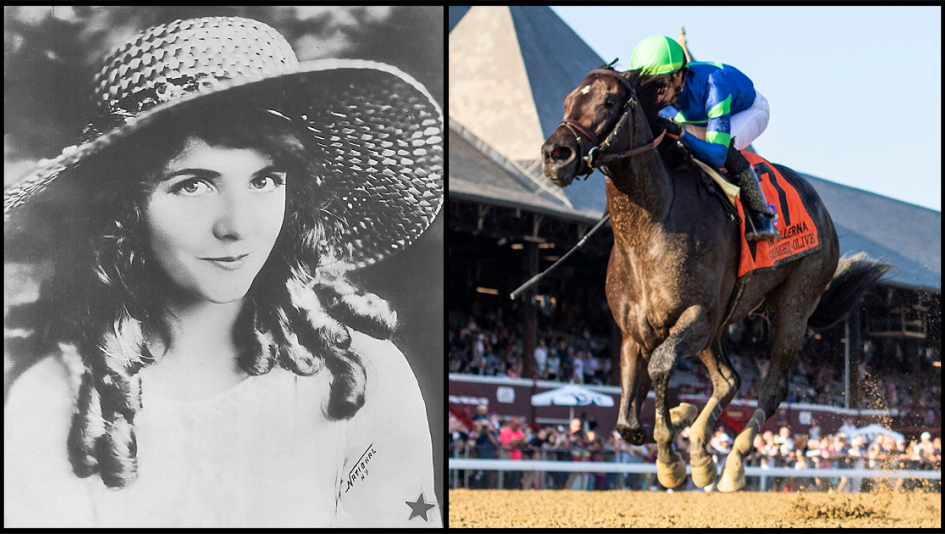 Silent-film actress Olive Thomas, left, reportedly haunts New Amsterdam Theatre in New York, while namesake, Goodnight Olive, by Ghostzapper, has left opponents searching for answers on her winning streak entering the Breeders’ Cup Filly and Mare Sprint. (WikiMedia Commons-Eclipse Sportswire)