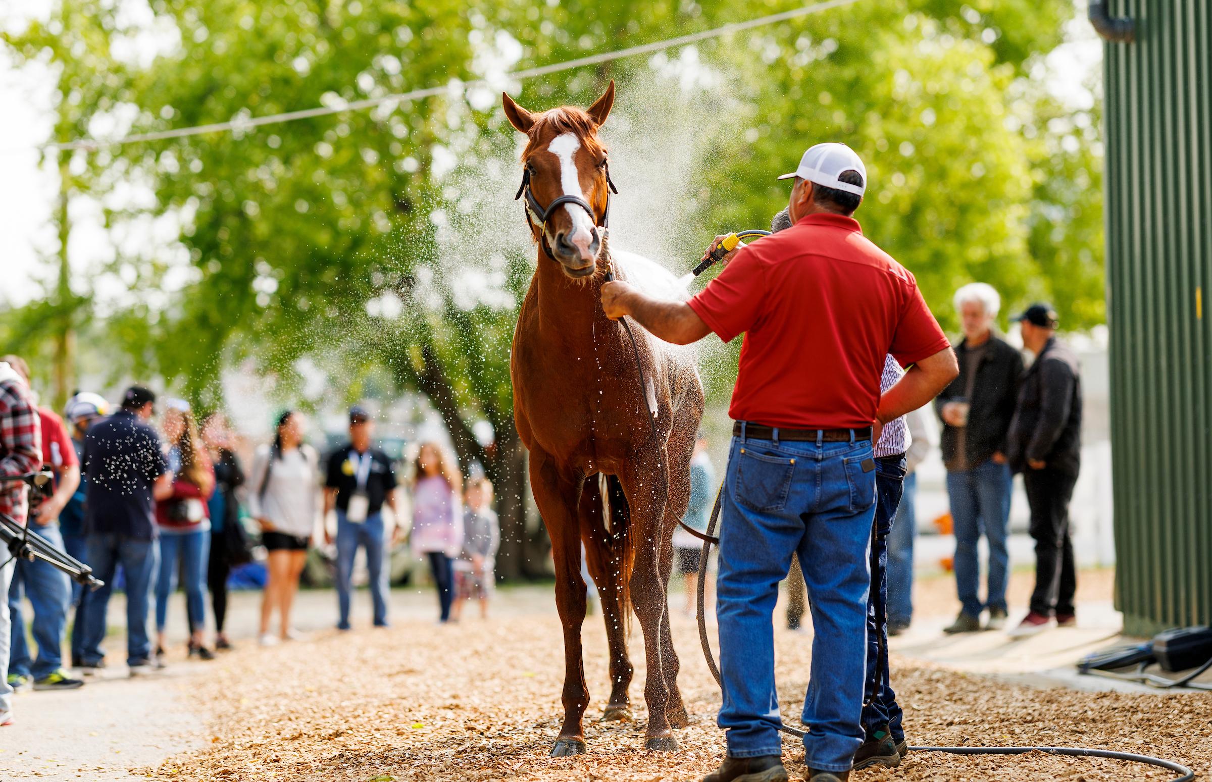 “To me he’s looking better with more energy and wanted to do a little more. His exercise rider, J.J. (Delgado), says he’s doing good,” the assistant trainer said.