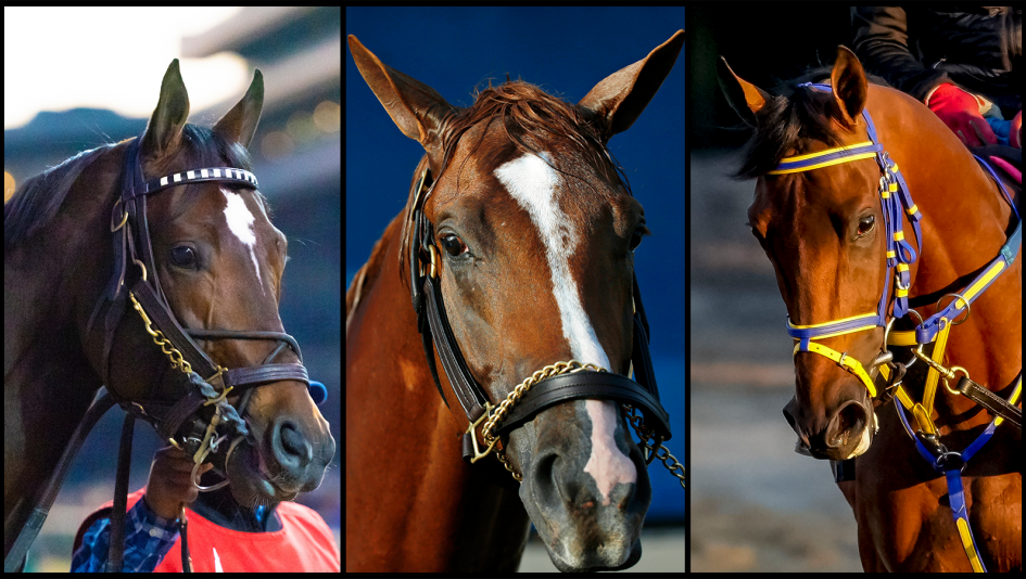 Pegasus World Cup contenders from left to right): Proxy, Cyberknife, and Skippylongstocking. (Eclipse Sportswire)