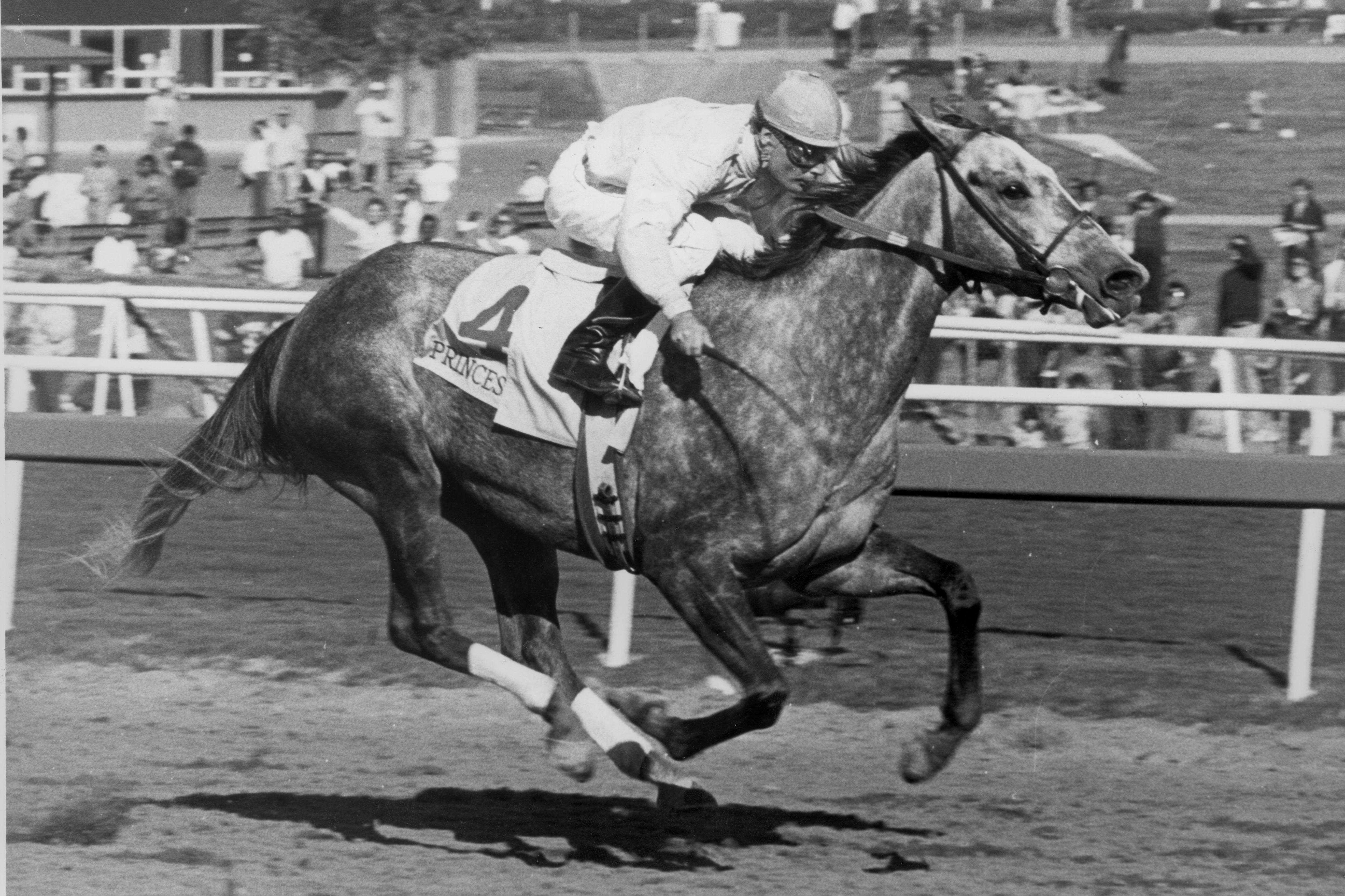 “She looks around a lot every time,” jockey Jacinto Vasquez explained in the May 7, 1983, edition of the Fort Myers, Florida, News-Press. “Whenever she sees a shadow, she tries to jump. Then when she got to the quarter-pole, a guy raised a camera inside the rail and she shied from it.”