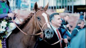Rachel Alexandra was led out of her barn, her coat glistening and dappled and a bit lighter than when she was racing. As she stood placidly in the morning sun, she was not bothered in the slightest by the two visitors fawning over her. She has held her weight extremely well, and she still has that same bright eye her fans remember during her glory days.